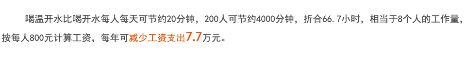 2、供水量足,每千瓦小时提供温开水50升,供水量增加4倍。满足宿舍员工用水需求。
